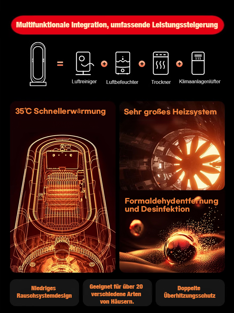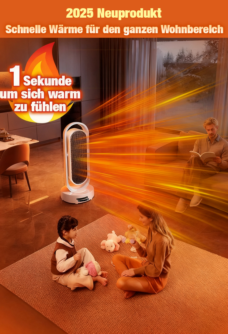 【1 Sekunde Sofortwärme】Energiesparendes, lichtloses, geräuscharmes Heizgebläse